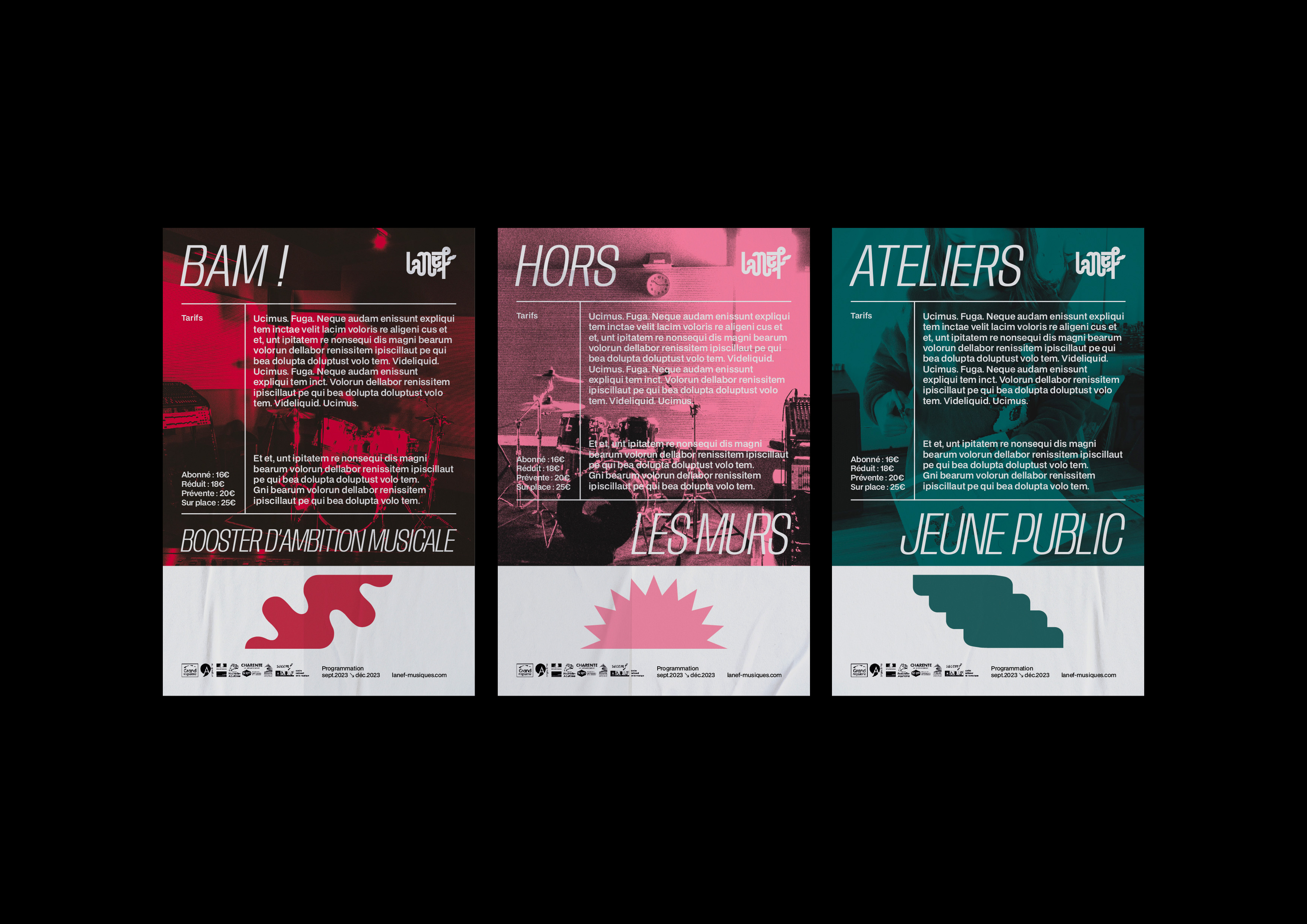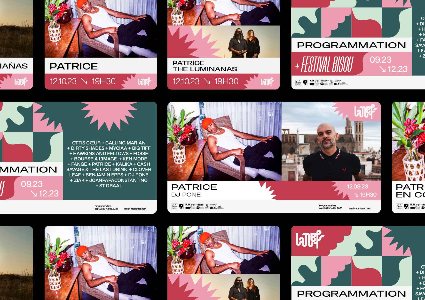 Cette direction artistique a été déployée en affiches, flyers, ainsi que sur les réseaux sociaux.