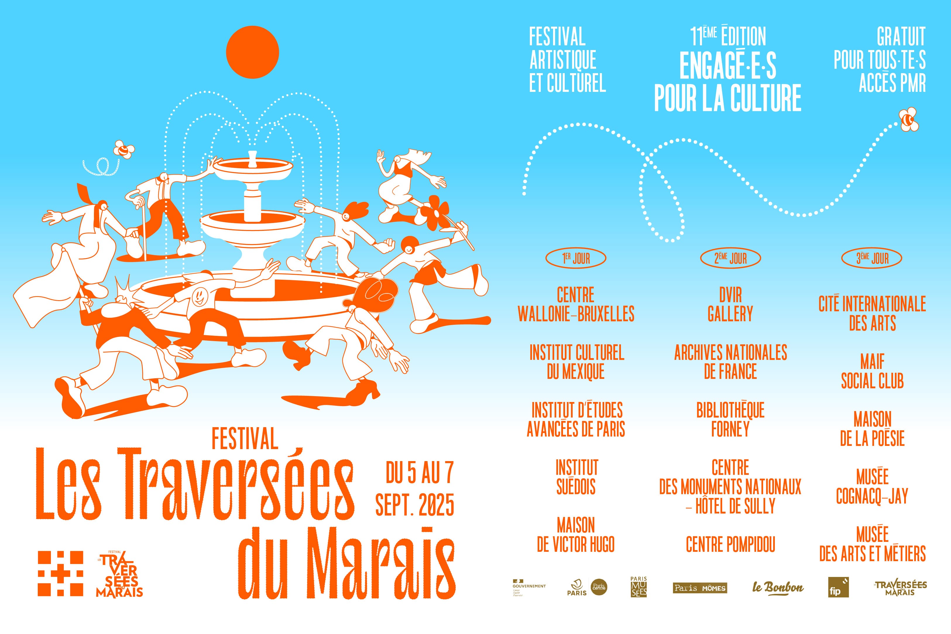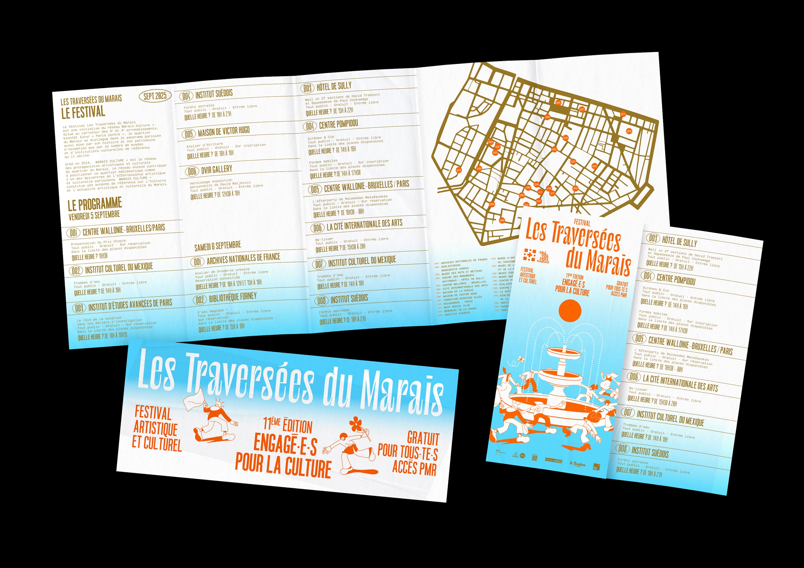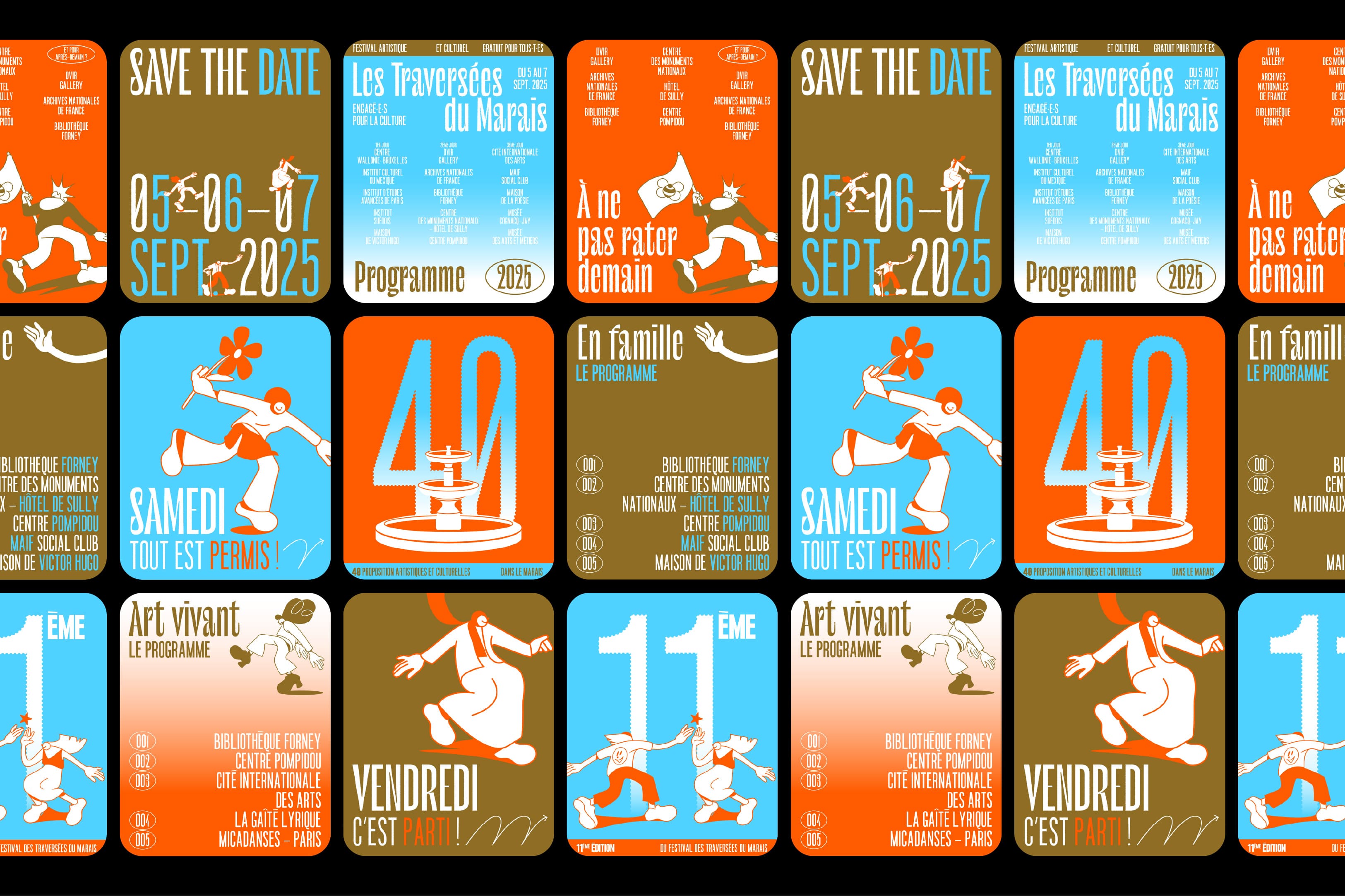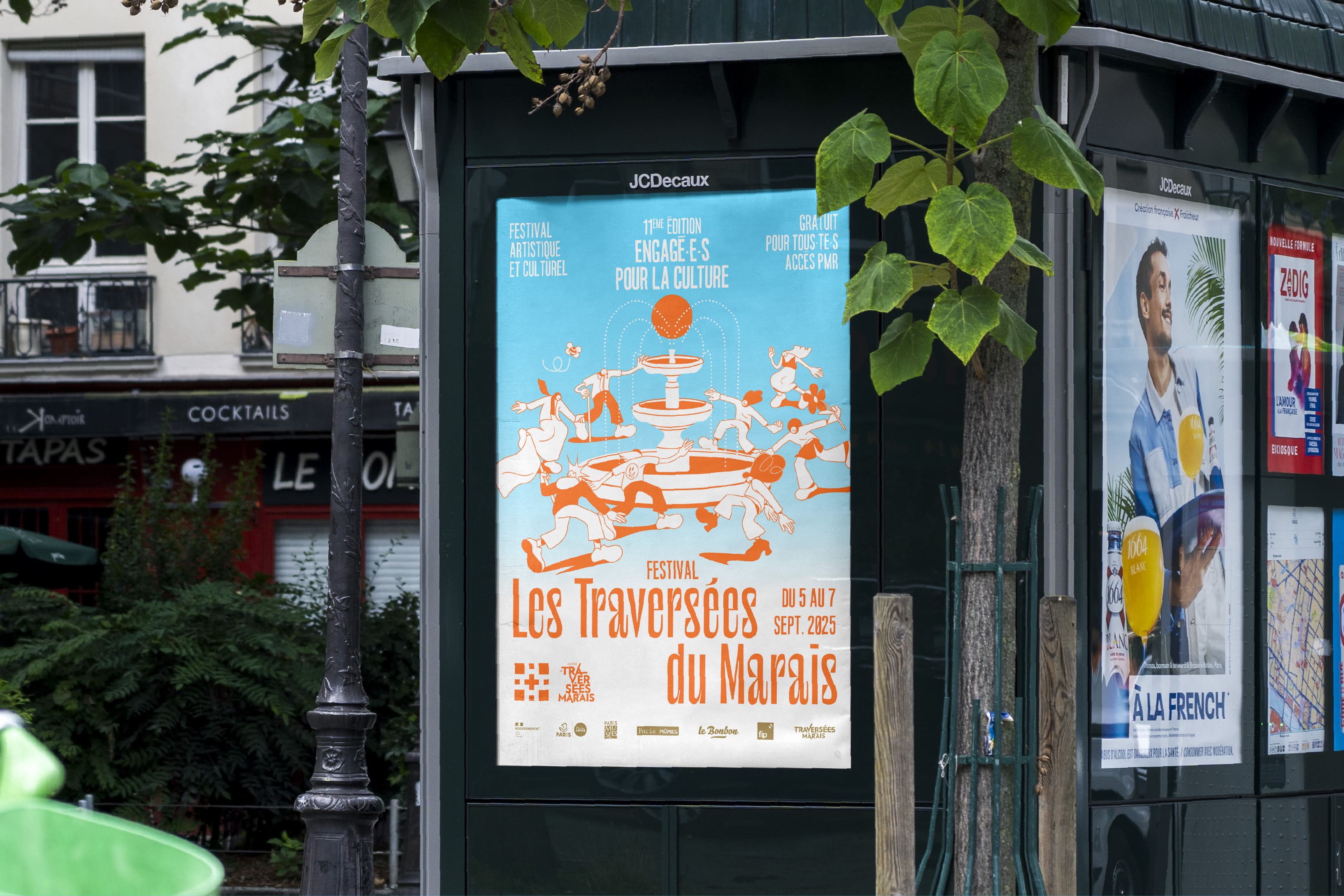 Proposition d'affiche et d'identité visuelle pour la 11ème édition du festival artistique et culturel des Traversées du Marais à Paris. La thématique de cette édition est : engagé·es pour la culture.